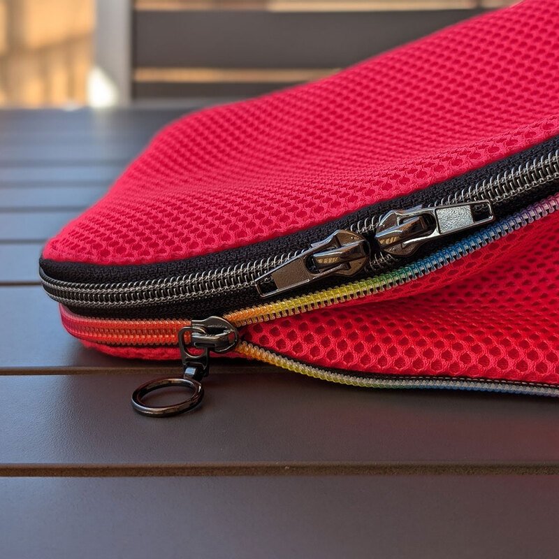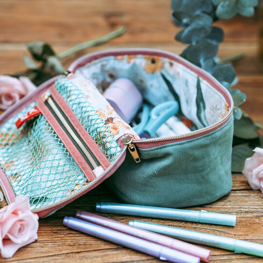 Der ZipKram-Reißverschluss: Mit einem rundum verlaufenden Reißverschluss lässt sich das Mäppchen flexibel in seiner Größe anpassen. Kompakt und handlich, wenn du es unterwegs dabei hast, oder geräumig, wenn du es aufklappst. Auch ist der Reißverschluss super hilfreich, wenn du auf das Packmaß der Tasche achten möchtest. Dies ist besonders dann nützlich, wenn du auf Reisen bist und im Rucksack oder Trolley nicht viel Platz hast bzw. deinen Stauraum möglichst sinnvoll nutzen möchtest.