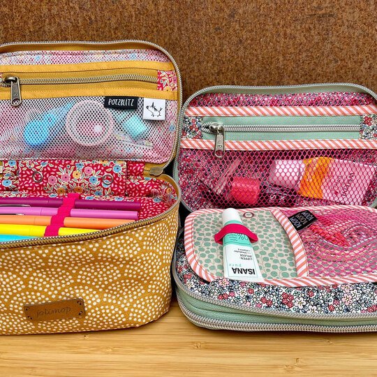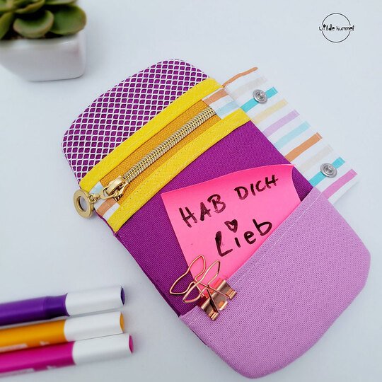 Nähanleitungen und Schnittmuster gestaltet als PDF-E-Book für ein klassisches Schlampermäppchen ZipKram mit dem besonderen Reißverschluss.