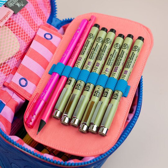 Reißverschlusstasche im Deckel: Die Netztasche eignet sich ideal für ein Geodreieck, Tintenpatronen, Kleingeld für das Pausenbrot, den Stundenplan oder Notizzettel. Die Inhalte aus der Reißverschlusstasche sind immer griffbereit und können nicht im Hauptfach verloren gehen.