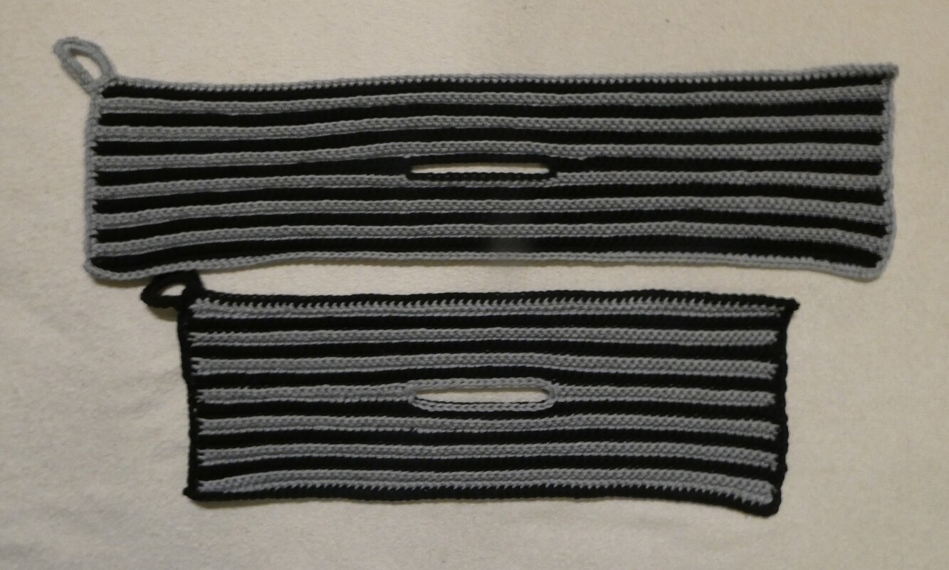 Der kleine Lappen hat eine Größe von 13 x 38cm, der große Lappen ist 13 x 52cm.