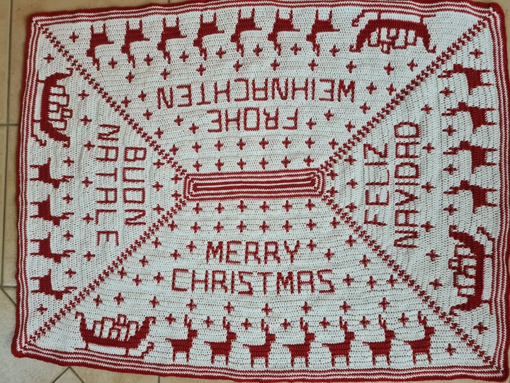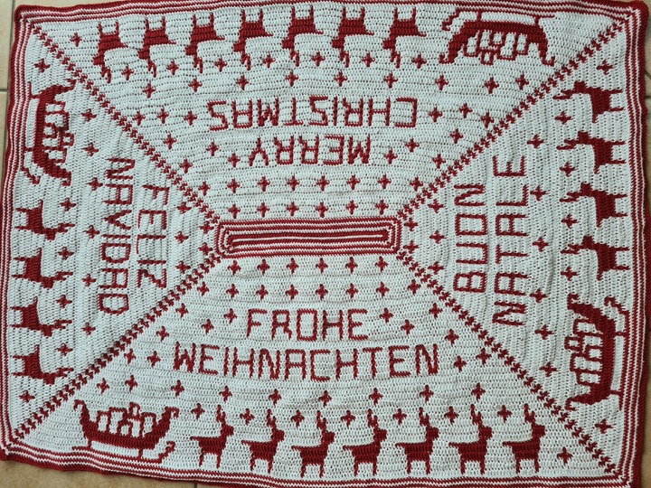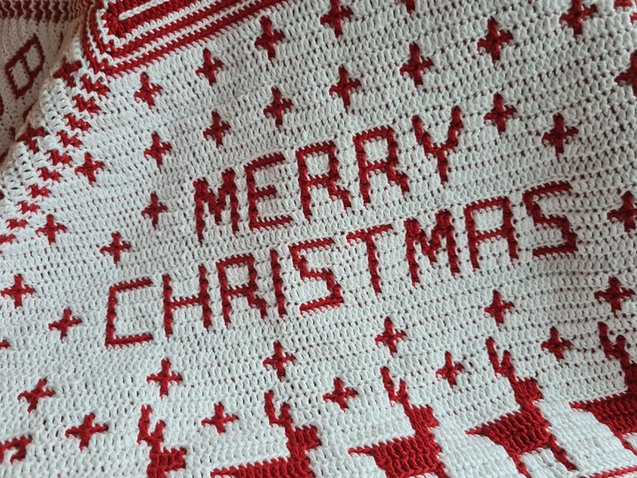 Da wir mit großen Schritten auf Weihnachten zugehen, habe ich mir eine tolle kleine Decke ausgedacht, die mit der Overlay-Mosaikhäkeltechnik gehäkelt wird.