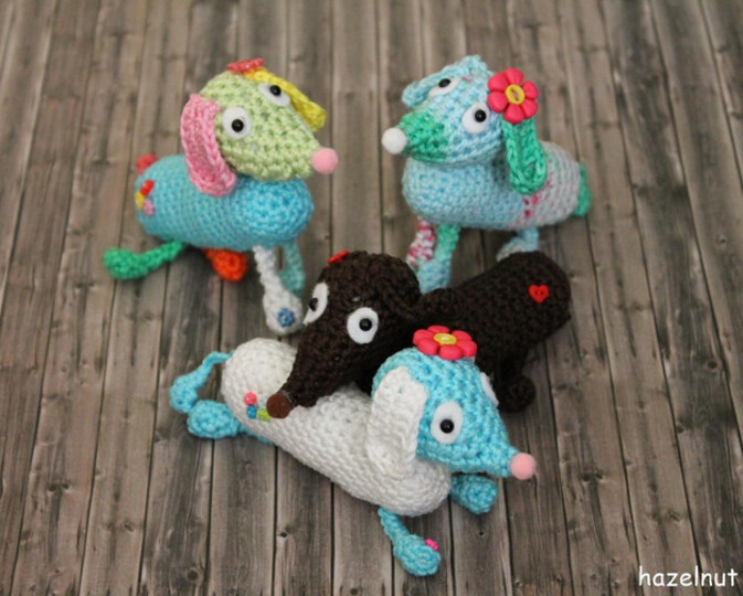 Niedlich, friedlich, lustig bunt - so kommt der kleine Dackel daher. Er eignet sich auch hervorragend als Schlüsselanhänger oder Taschenbaumler.
