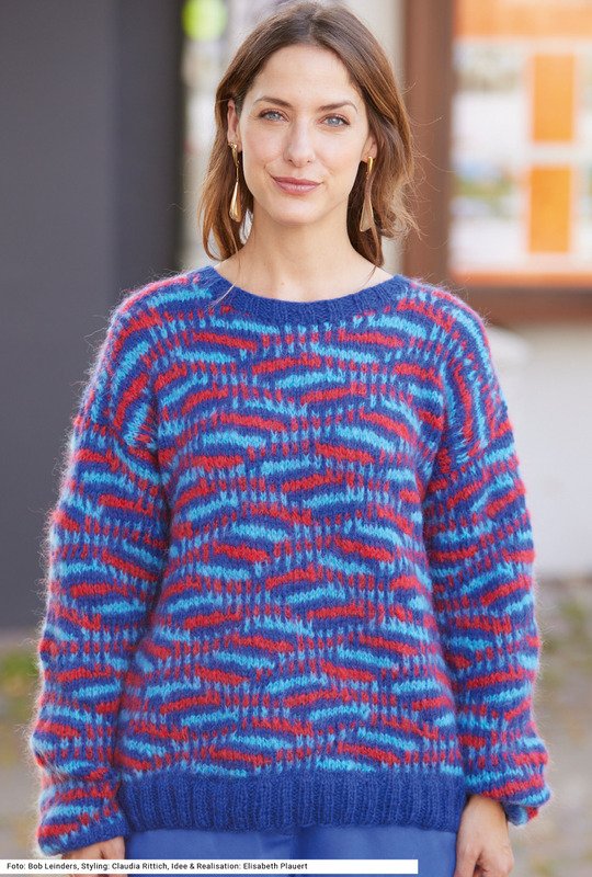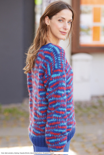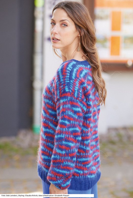 Dieses Set ist perfekt für alle, die nicht nur eine starke Farbkombination zu schätzen wissen, sondern auch gerne unterschiedliche Muster mischen. Bei dem flauschigen Pulli mit überschnittenen Schultern und weiten Ärmeln kommt ein Hebemaschenmuster zum Einsatz, der Fransen-Schal wird glatt rechts gearbeitet, mit abgehobenen Maschen am Farbübergang der Streifen. Die geschickte Kombination aus glatt rechtem Gestrick und Strukturen basierend auf Hebemaschen, sorgt für eine interessante Textur und ein angenehmes Tragegefühl. Mit detaillierten Anleitungen für verschiedene Muster- und Farbfolgen ist dieses Set perfekt für alle Strickbegeisterten, die kreative Akzente setzen möchten.