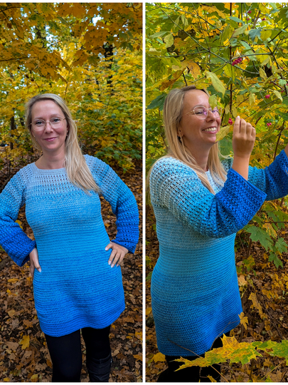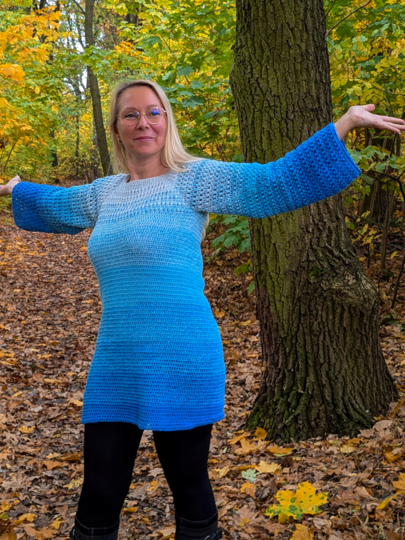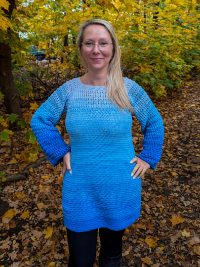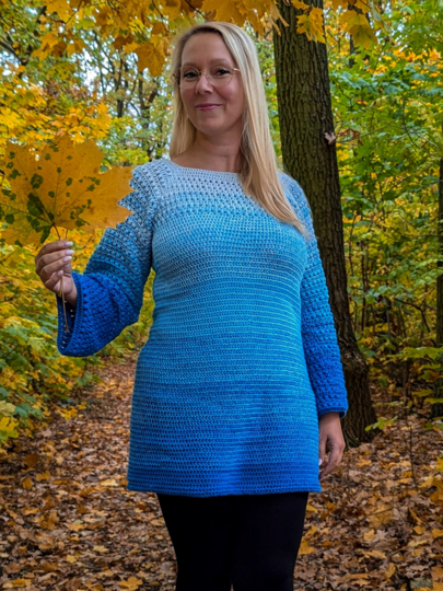 Der Long-Pullover kann in jeder Größe gehäkelt werden.