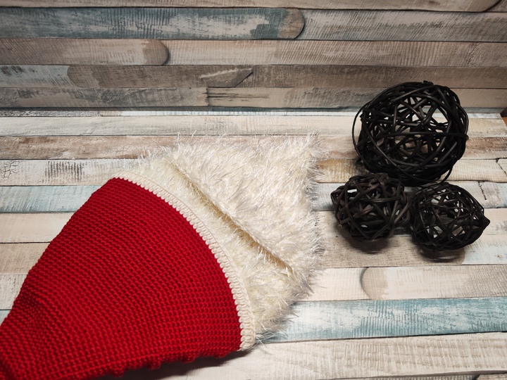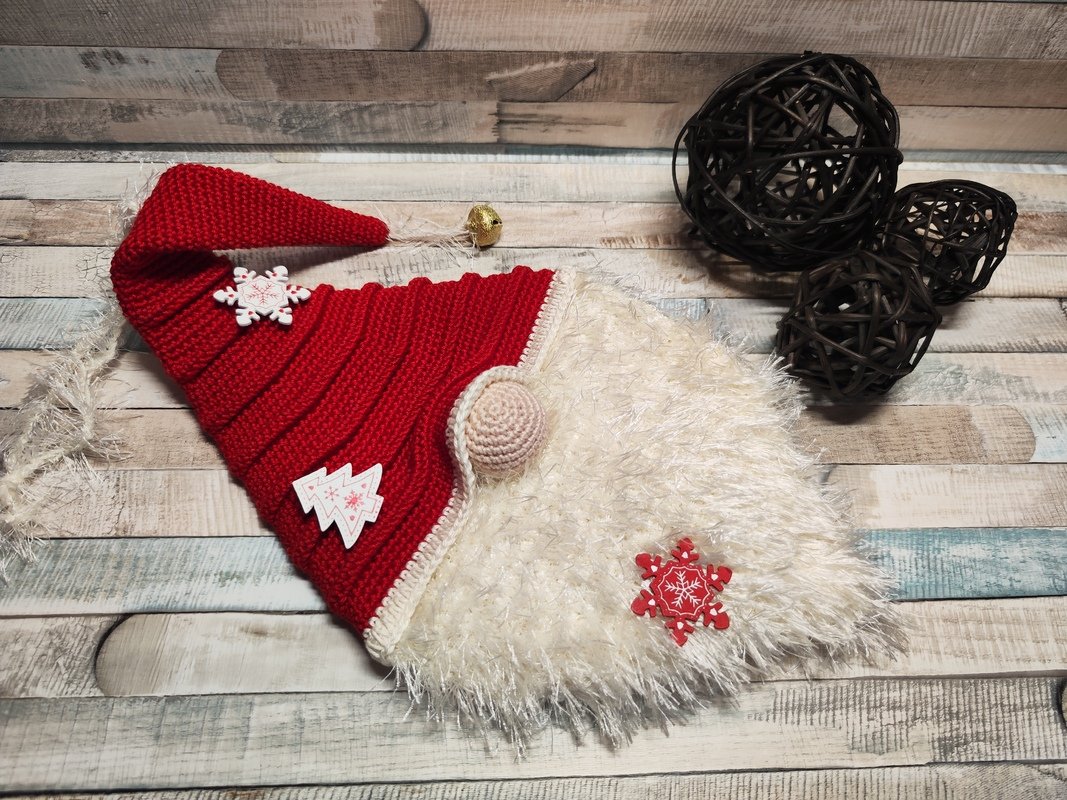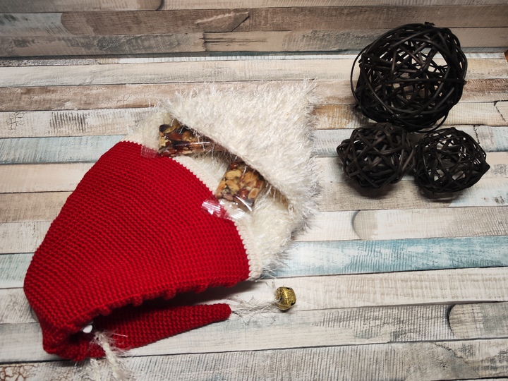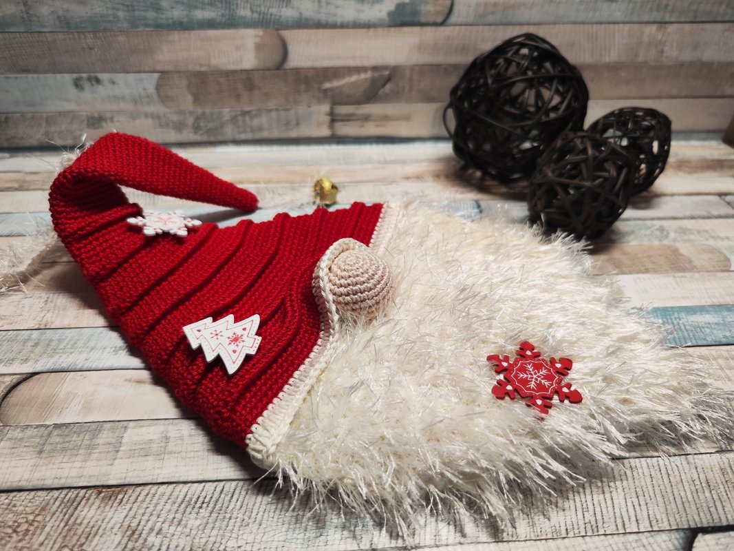 Der Nikolausmützenwichtel wurde mit Baumwollgarn (50g-125m) und einer 2,5 Nadel gehäkelt.