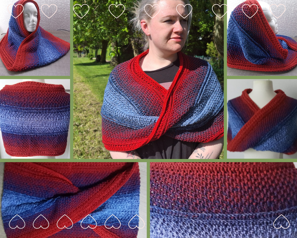 Diese in sich gedrehte Form macht ihn nicht nur als Halswärmer vielseitig, sondern erlaubt es auch, ihn als gemütlichen Schulterwärmer oder Kapuzenschal zu tragen.