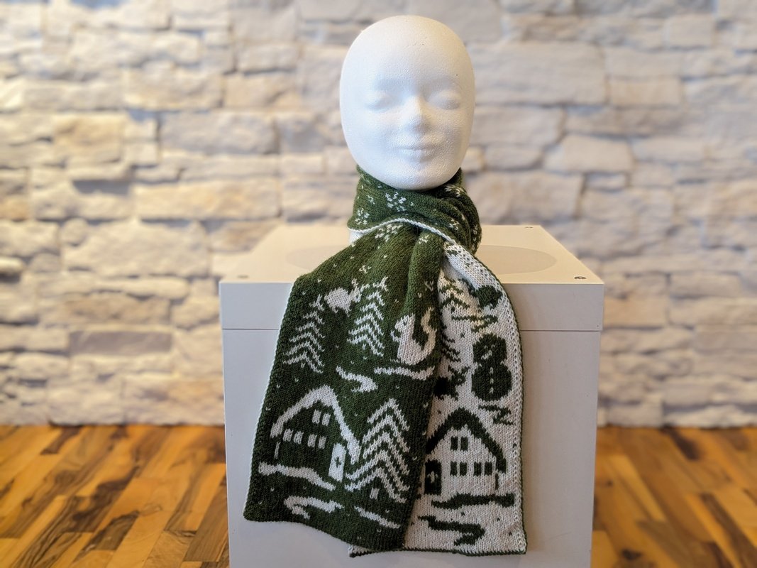 Diese verschneite Winterwelt sieht aus wie der Beginn eines wunderschönen Märchens. An kalten trüben Wintertagen ist es wundervoll, sich in den kuscheligen Schal einzuwickeln und von dieser friedlichen Idylle zu träumen. Schon beim Stricken macht es riesig Spaß zu verfolgen, wie die märchenhafte Winterlandschaft entsteht!