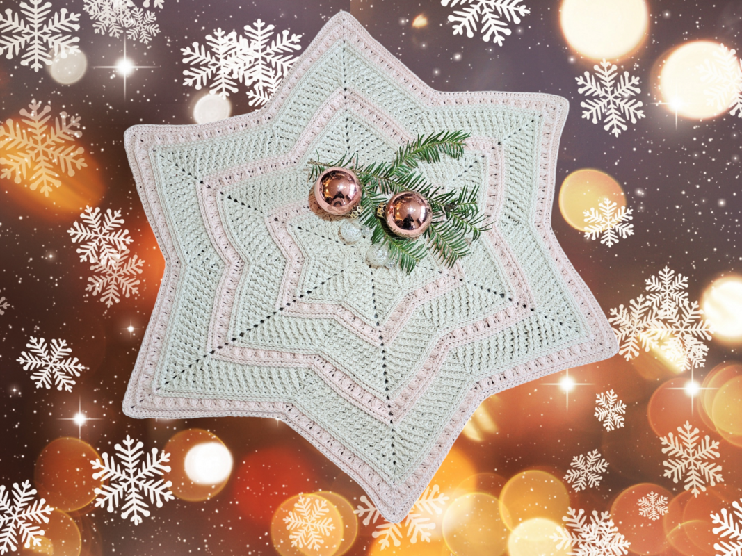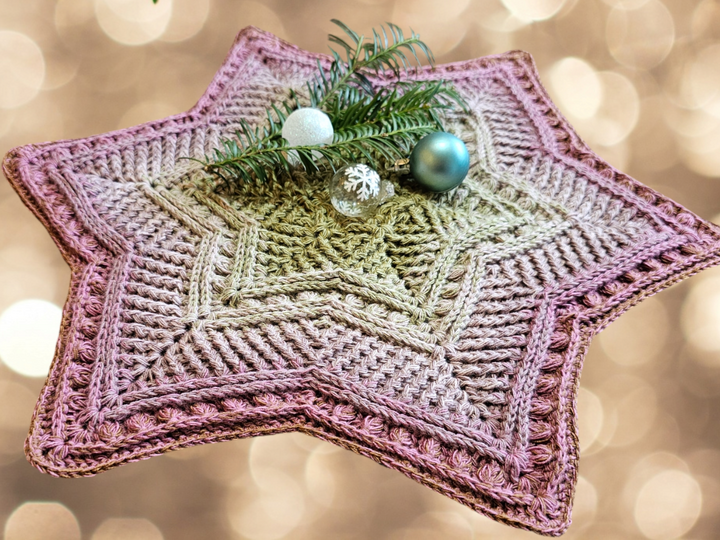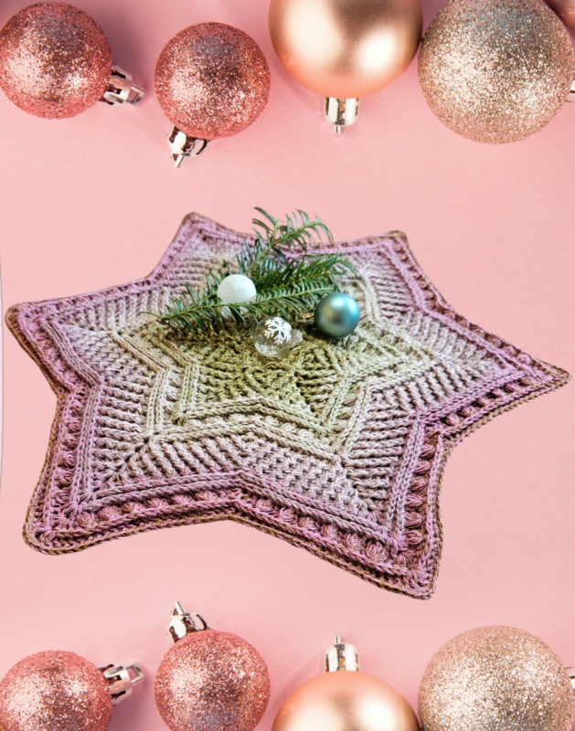 Der Stern kann mit Baumwolle oder Farbverlaufsbobbel gehäkelt.