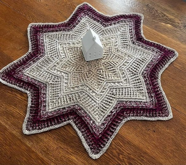 Sie kann mit 6, 8 oder 10 Zacken in beliebiger Größe gehäkelt werden.