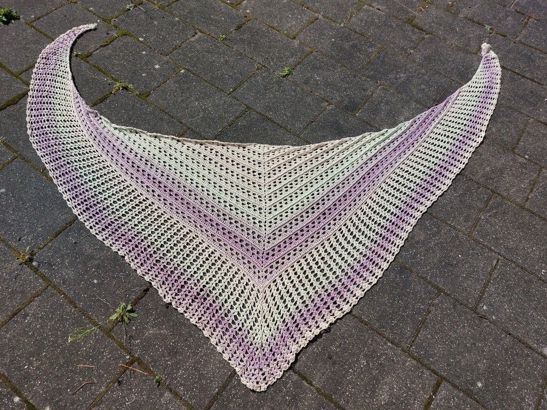 Die Reihen wiederholen sich, daher kann das Tuch in jeder beliebigen Größe gehäkelt werden.