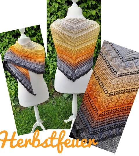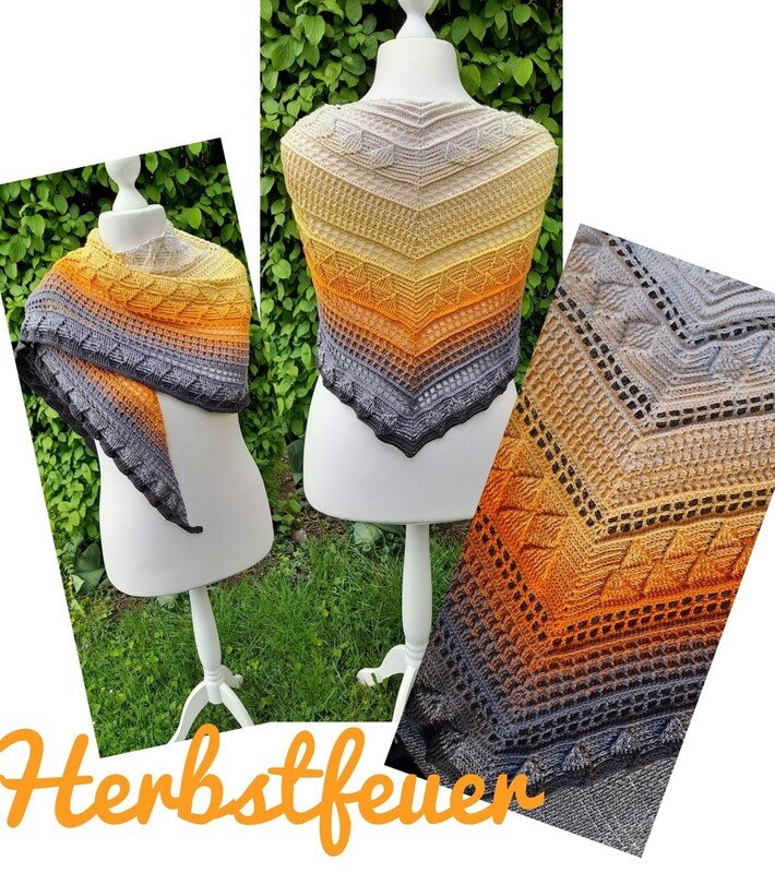 "Herbstfeuer" ist ein kuscheliges, flaches Dreiecktuch für die kühleren Herbsttage.