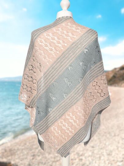 Das Stricken dieses Designs ist eine Möglichkeit, die Dynamik des Meeres in deine Handarbeit einzufangen. Während du zwischen den verschiedenen Mustern wechselst, spürst du die Vielfalt der Natur in deinen Händen.