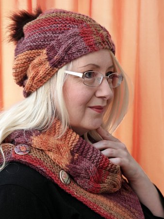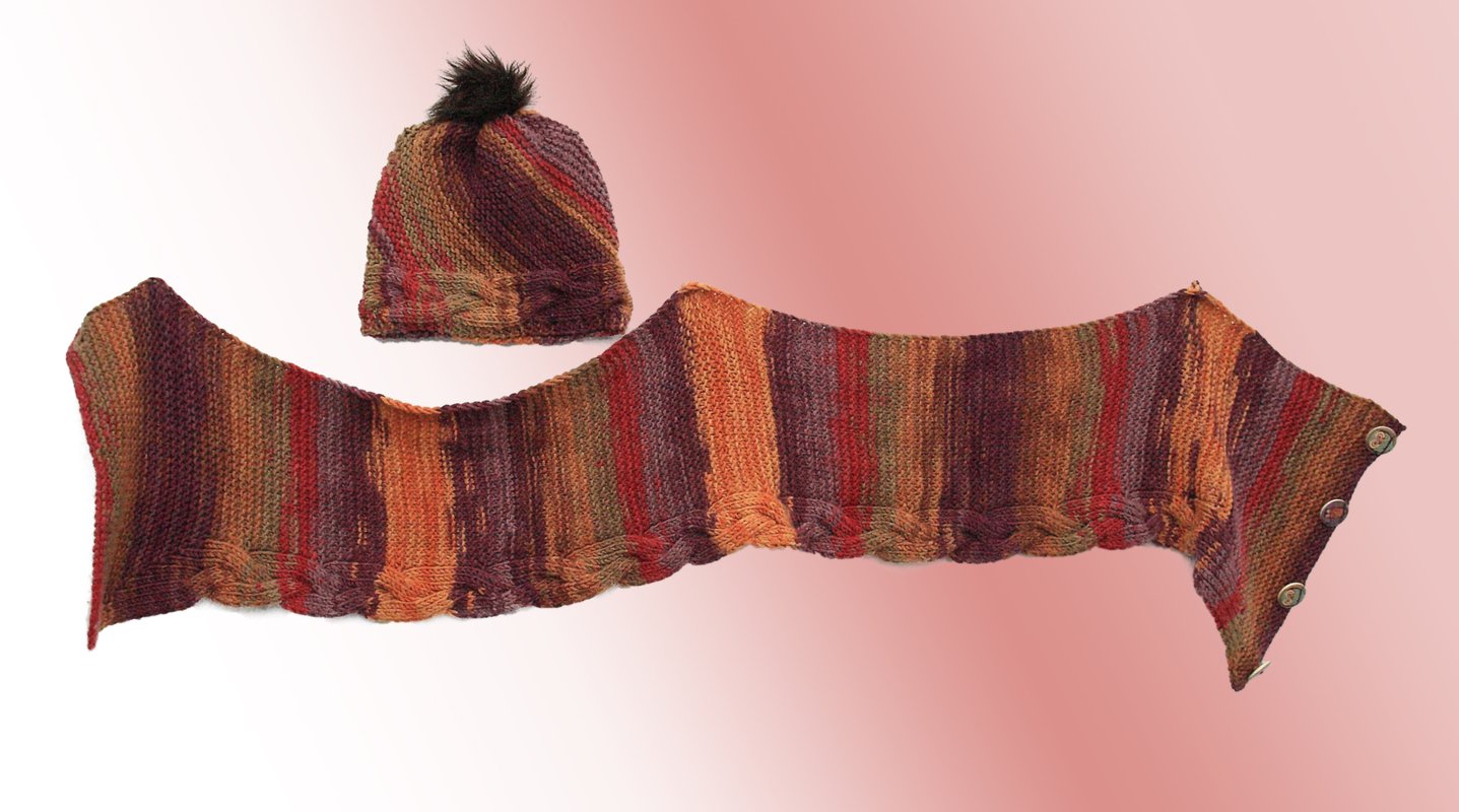 Dieses herrliche Set aus Schal und passender Mütze trotzt jedem Schnee und dem kalten Winter und hält den Träger zuverlässig warm. Durch die Knöpfe und das auf Vor- und Rückseite gleich aussehende Muster ist der Schal sehr vielseitig zu tragen.