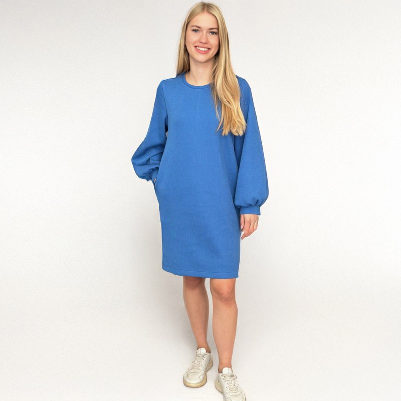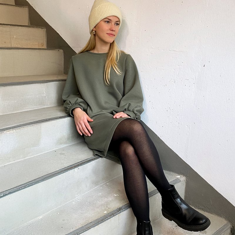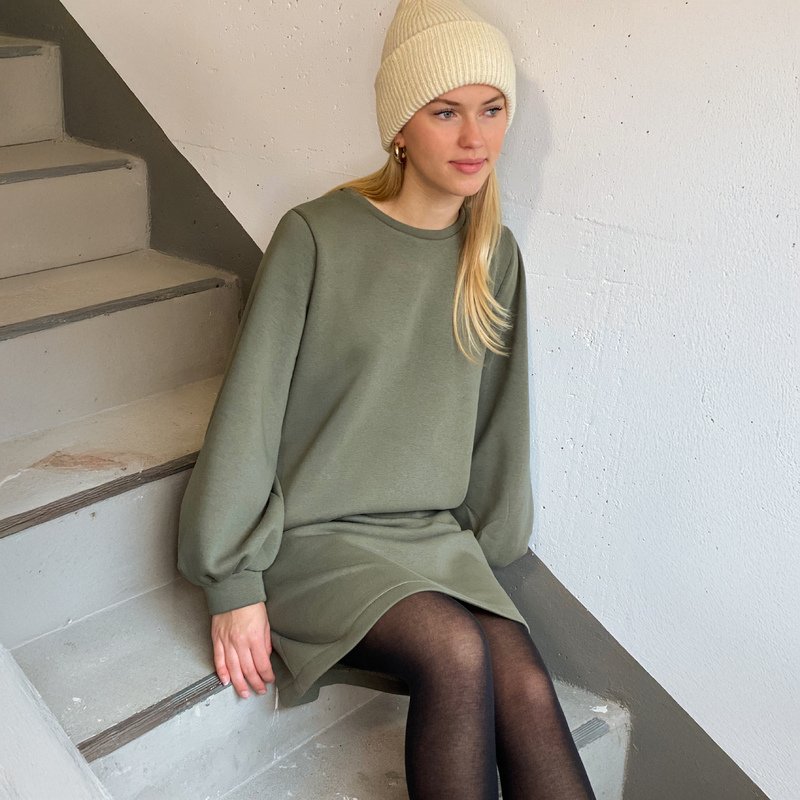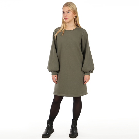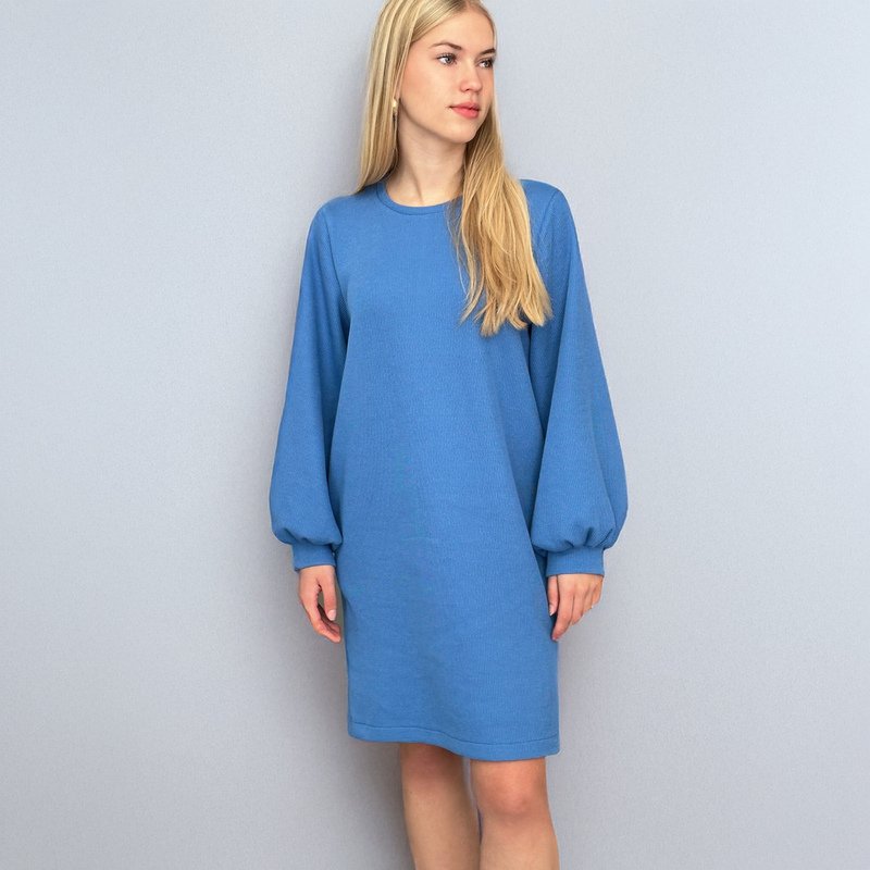 FRAU LINN ist schlicht und stylisch zugleich. Das kurze Keid mit Rundhalsausschnitt ist schlank und gerade geschnitten ohne körpernah zu sein. Es hat eine klassische Armkugel und nach unten weit ausgestellten Ärmel, die am Saum gekräuselt werden und mit einem Bündchen abschließen. FRAU LINN passt sich jedem Anlass an und kann sportlich mit Sneakern genauso getragen werden, wie glamourös mit High Heels.