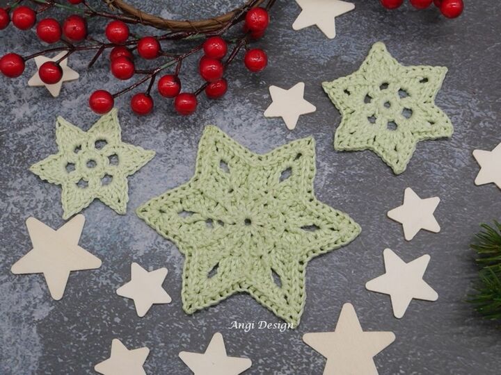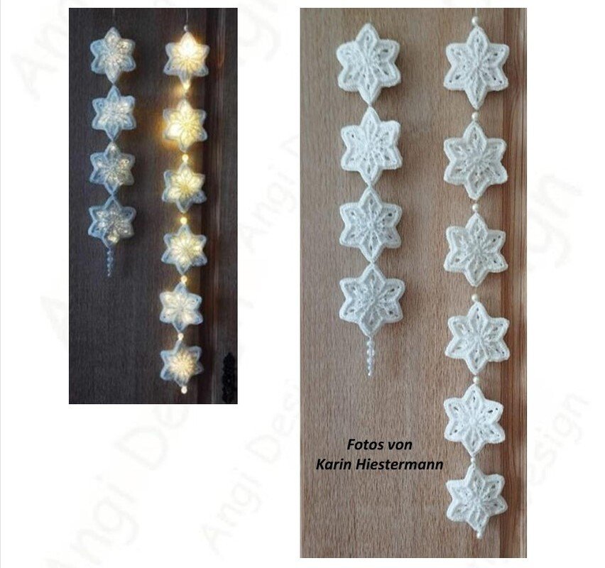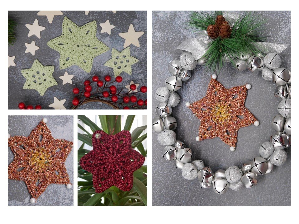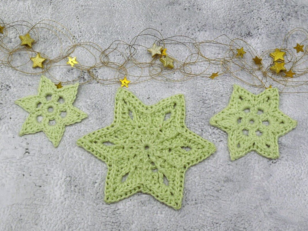 Du erhältst eine ausführliche Häkelanleitung, mit vielen Fotos, für Sterne in 3 verschiedenen Größen.
