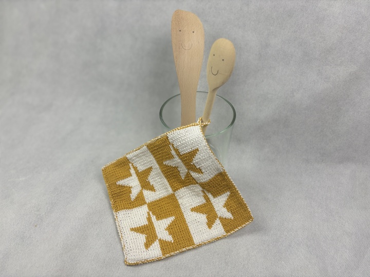 Wer die Übungen aus meiner Gratis Grundschule Double Face Stricken (https://www.crazypatterns.net/de/items/97086/double-face-stricken-eine-grundschule) nacharbeiten kann, kann diesen Topflappen stricken.
