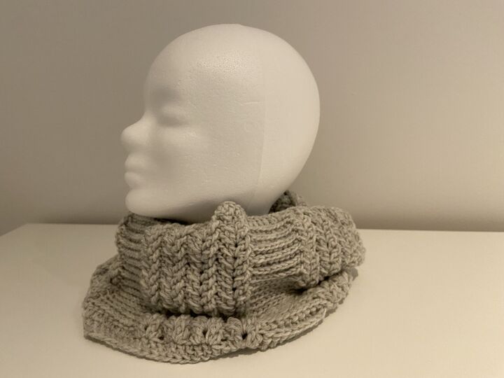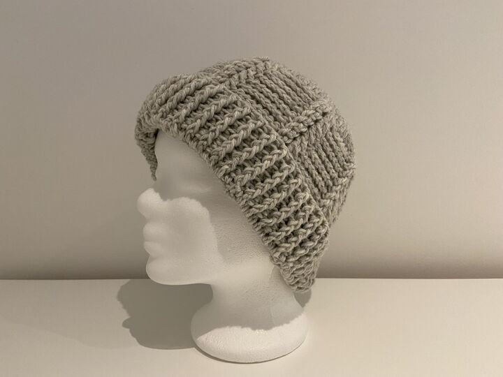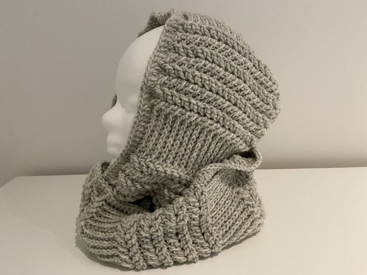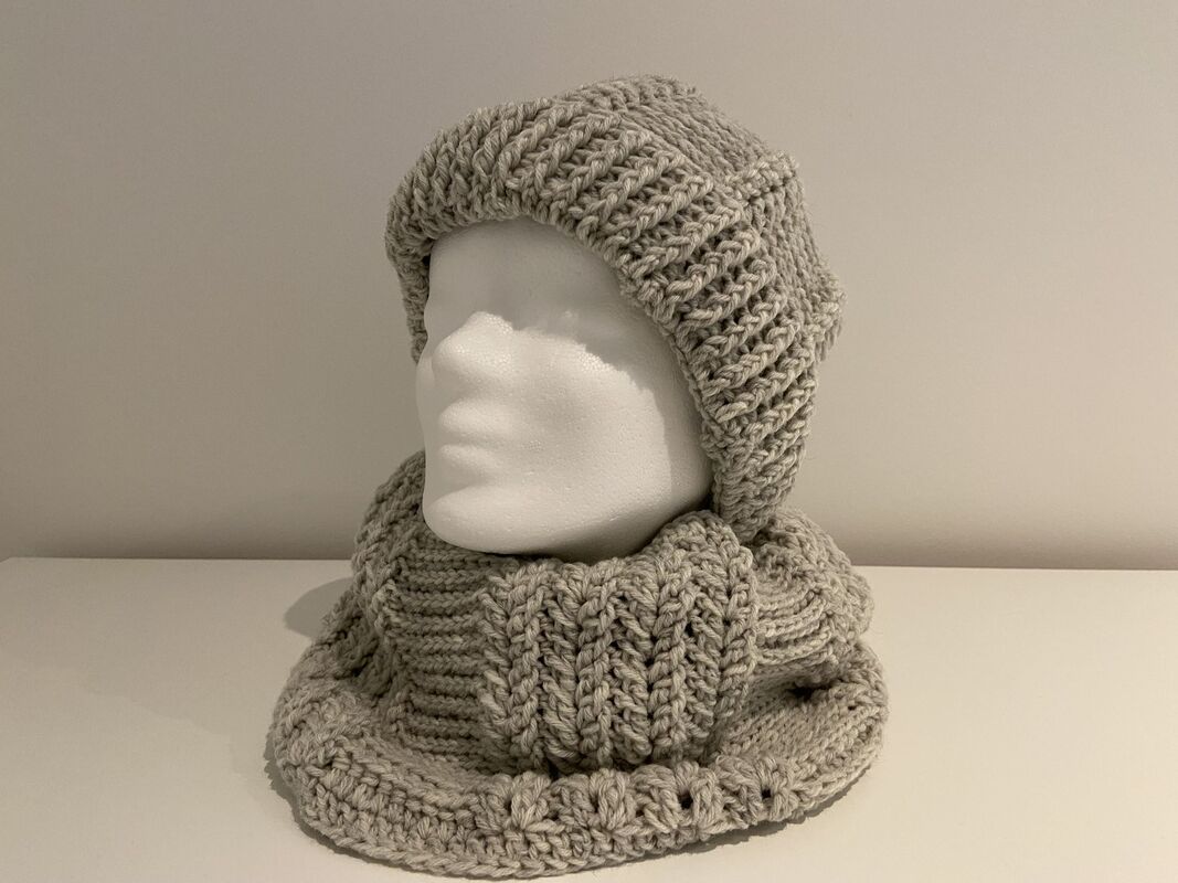 Unter Verwendung des angegebenen Materials hat der Loop einen Umfang von ca. 120 cm und kann so problemlos zweimal um den Hals gelegt werden. Die Mütze ist in den Größen S/M und M/L ausgearbeitet.