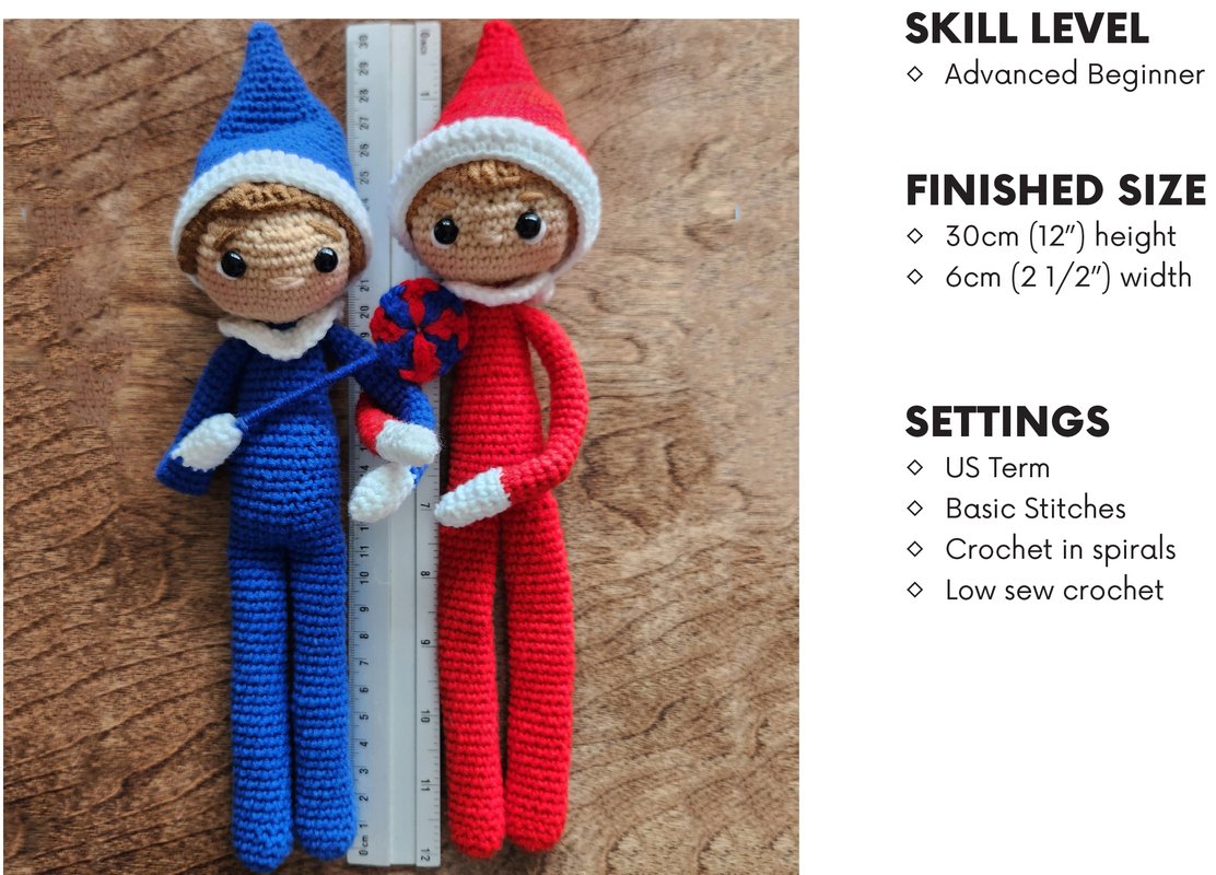Bringen Sie festliche Stimmung in Ihr Zuhause mit dieser bezaubernden Häkelanleitung für einen Weihnachts-Elfenjungen! Häkeln Sie eine 30 cm große Elf-Puppe in festlichem Blau und Rot mit biegsamen Armen für kreative Posen. Perfekt, um Ihrer Dekoration eine persönliche Note zu verleihen oder einen einzigartigen Begleiter zu verschenken!