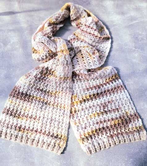 Die Anleitung besteht aus 5 Seiten. Es gibt eine schriftliche Erklärung, sowie je eine Häkelschrift für das Tuch, den Loop und den Schal.