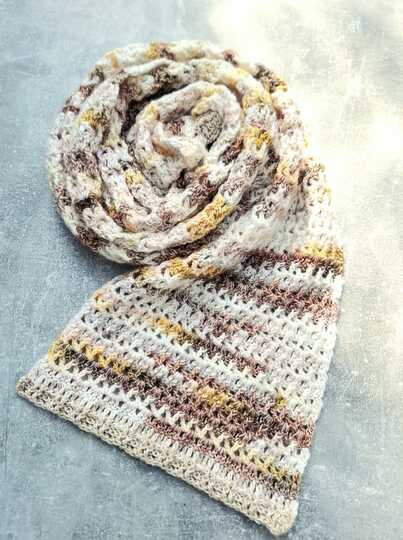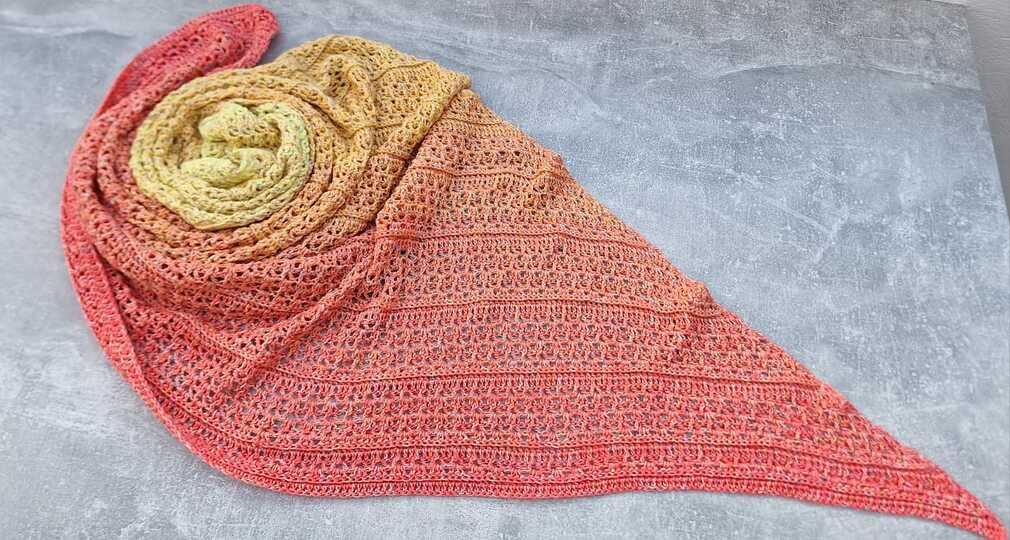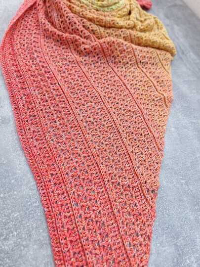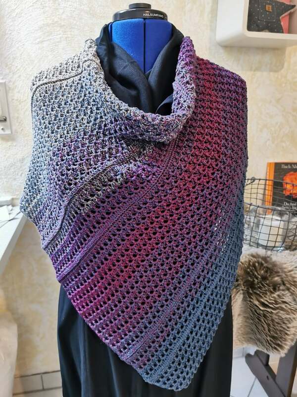 Ein asymmetrisches Tuch, einen Loop oder einen Schal .. alles passt gut zur kälteren Jahreszeit. Trotz der Luftmaschen ist es doch recht kompakt.