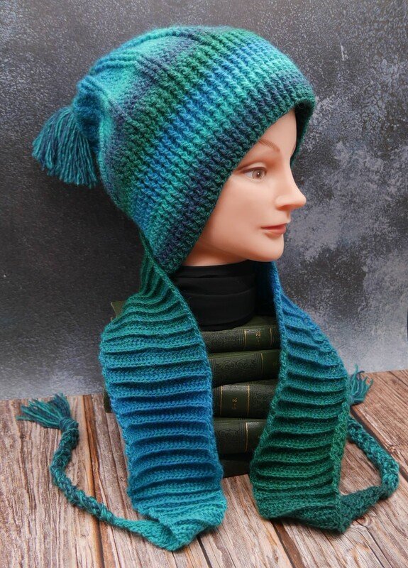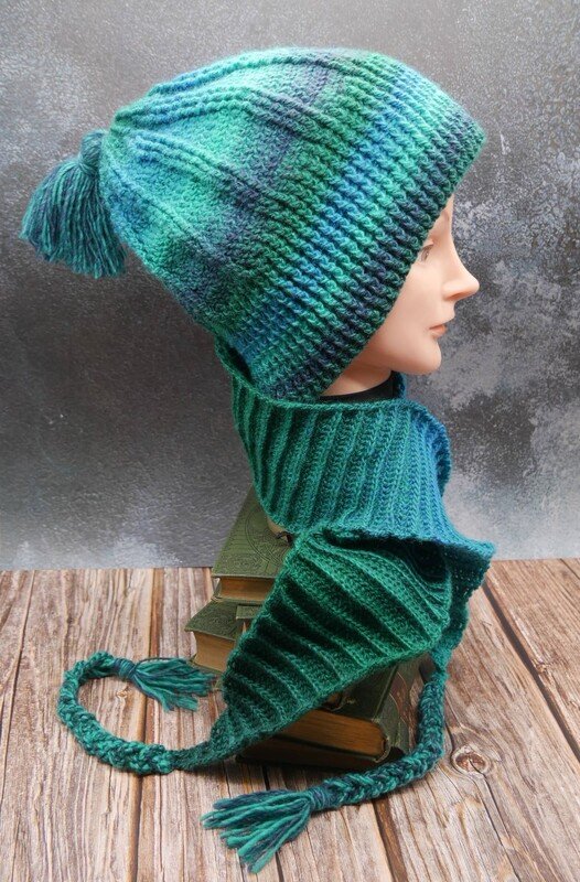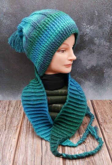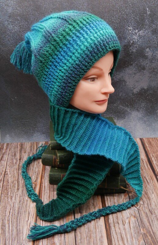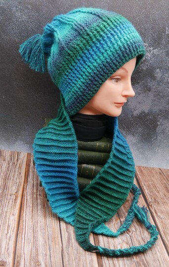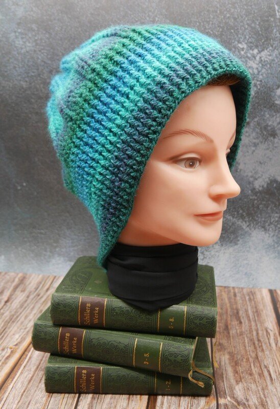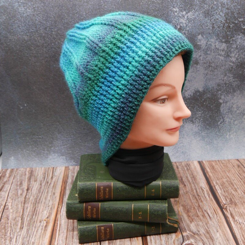 Die Anleitung erklärt auch wie du diesen Beanie auch ohne Schal häkeln kannst.
