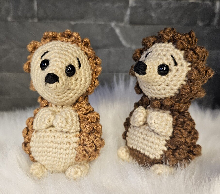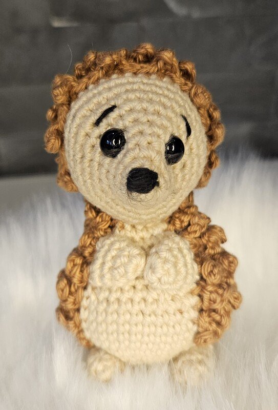 Mit der angegebenen Wolle und mit einer Nadelstärke von 2,5mm wird der Igel eine Größe von ca. 10cm haben. Bitte beachtet, dass die Größe variieren kann.
