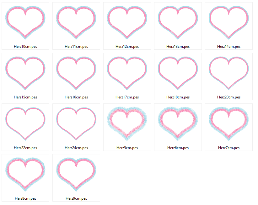 Stickdatei Herz Rahmen mit doppeltem Rand in 17 Größen für Stoffapplikationen