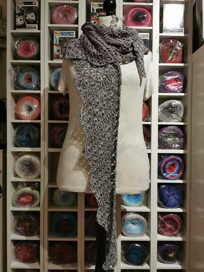 Die liebe Satu von Satuko Design hat mich gefragt, ob ich für sie ein Tuch aus ihrer Wolle häkeln könnte, das sie zur Handarbeitsmesse in Tampere mitnehmen kann. Aus 800 Metern der superweichen Merinowolle ist dieses Drachenschwanz-Tuch entstanden. Die Anleitung ist schriftlich und umfasst eine Häkelschrift. Das Muster ist leicht zu merken und sieht in allen Farben toll aus. Im Beispiel hat das Tuch eine Größe von etwa 230 cm x 48 cm, kann jedoch beliebig vergrößert werden, da es ein fortlaufendes Muster ist.