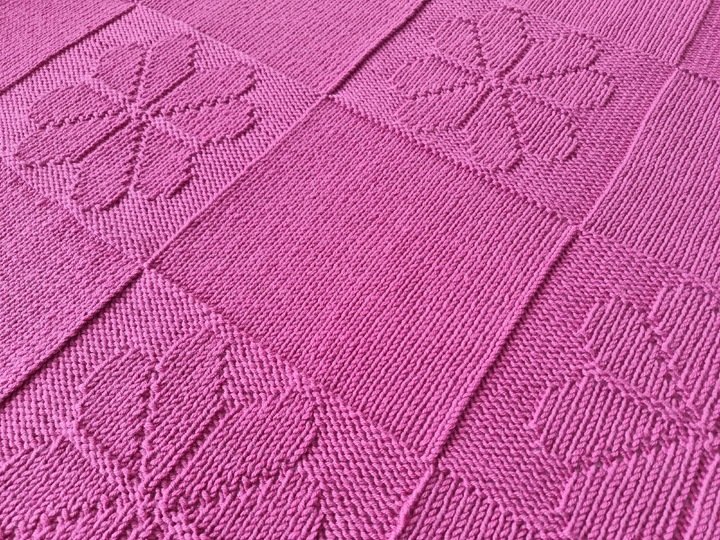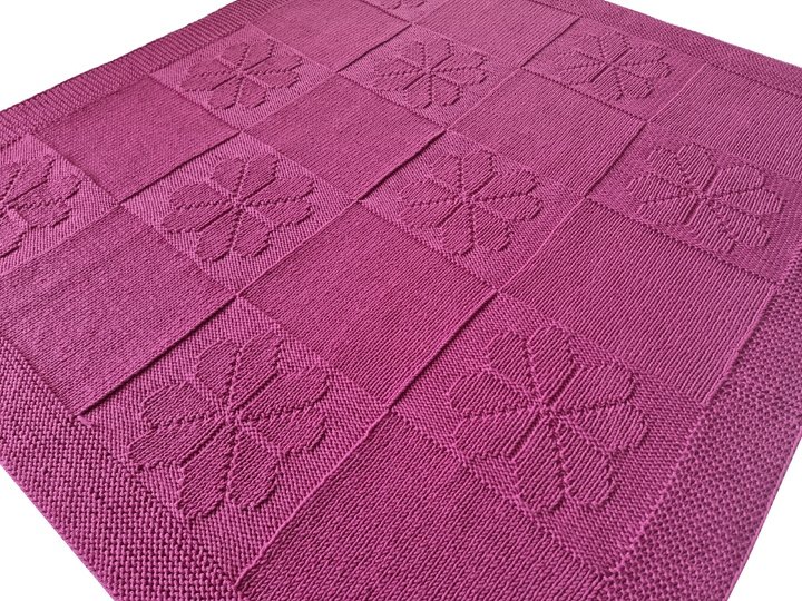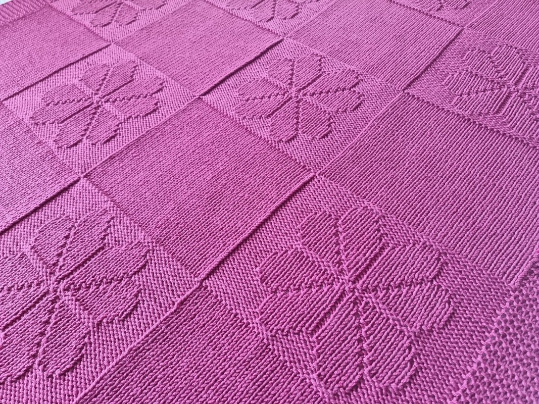 PDF-Strickanleitung für eine schöne und einfache Baby-, Kinderdecke "Blumenfeld" mit Zählmuster.