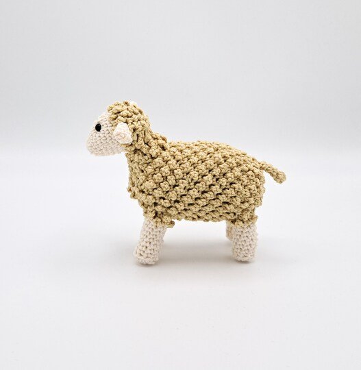Mit einer Häkelnadel Stärke 2,5 und dem Garn Schachenmayr Catania (50 g / 125 m) wird das Tier ca. 10,5 cm hoch und 12 cm lang.