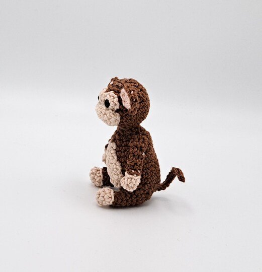 Mit einer Häkelnadel Stärke 2,5 und dem Garn Schachenmayr Catania (50 g / 125 m) wird das Tier ca. 8 cm hoch.