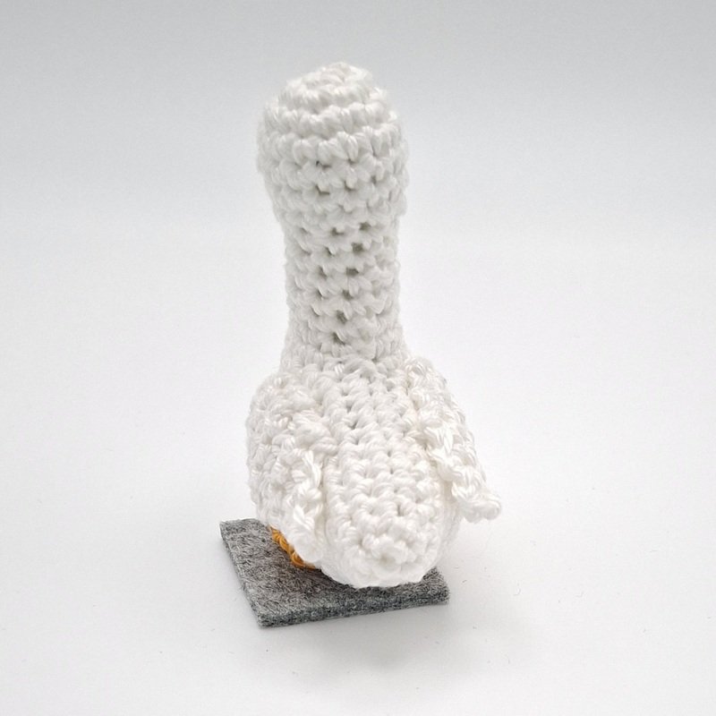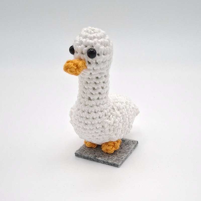 Mit einer Häkelnadel Stärke 2,5 und dem Garn Schachenmayr Catania (50 g / 125 m) wird das Tier ca. 8 cm hoch und 6 cm lang.