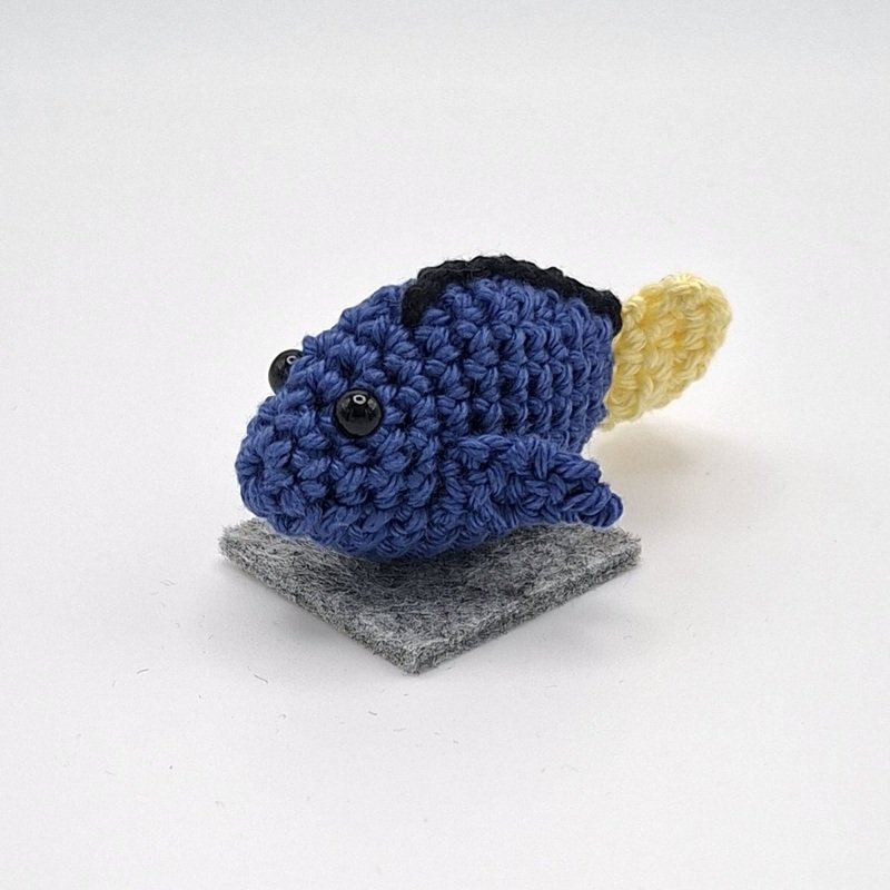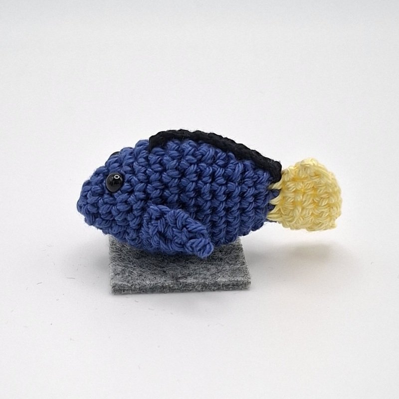 Mit einer Häkelnadel Stärke 2,5 und dem Garn Schachenmayr Catania (50 g / 125 m) wird das Tier ca. 6 cm lang.