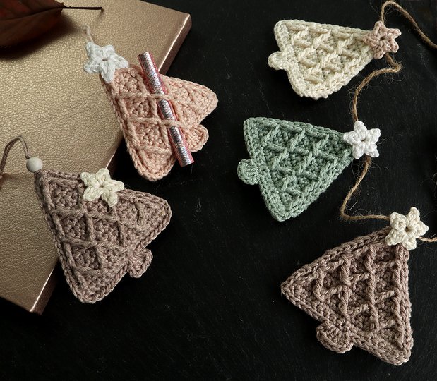 Aus den süßen raffiniert gehäkelten Bäumchen kannst du dir eine wunderschöne Girlande oder tolle Anhänger Geschenk- / Schlüsselanhänger zaubern.