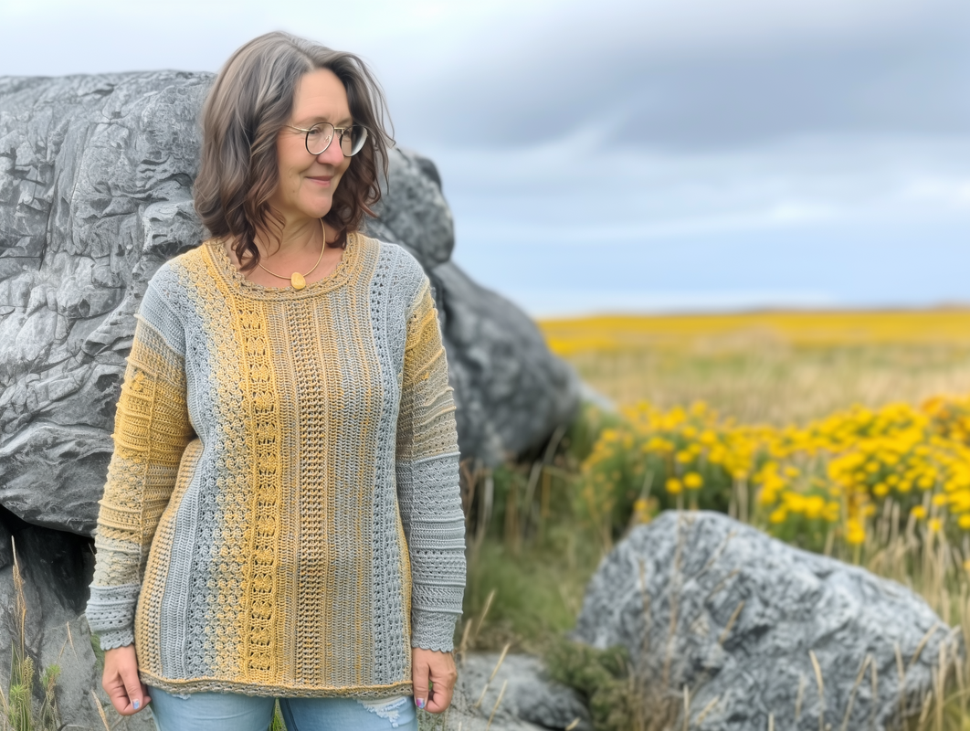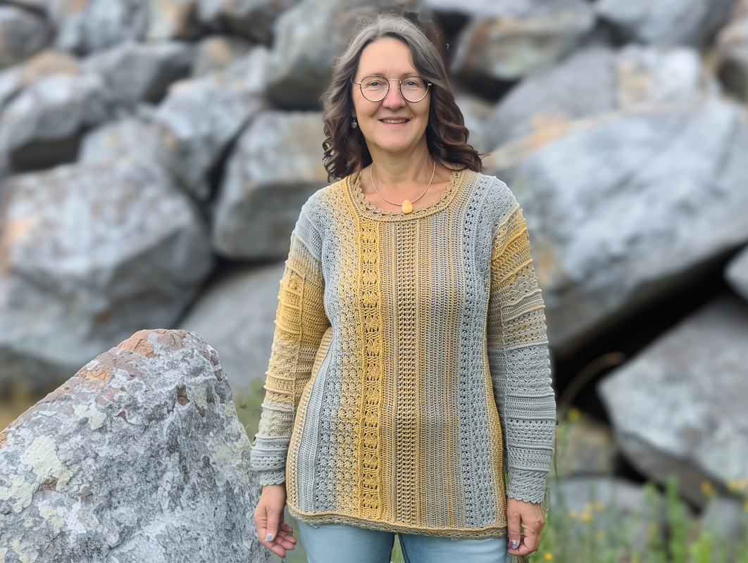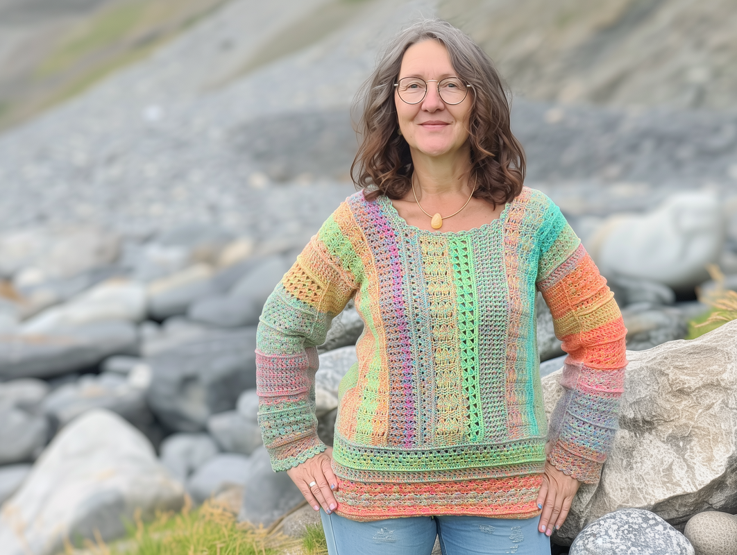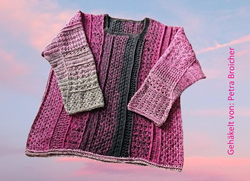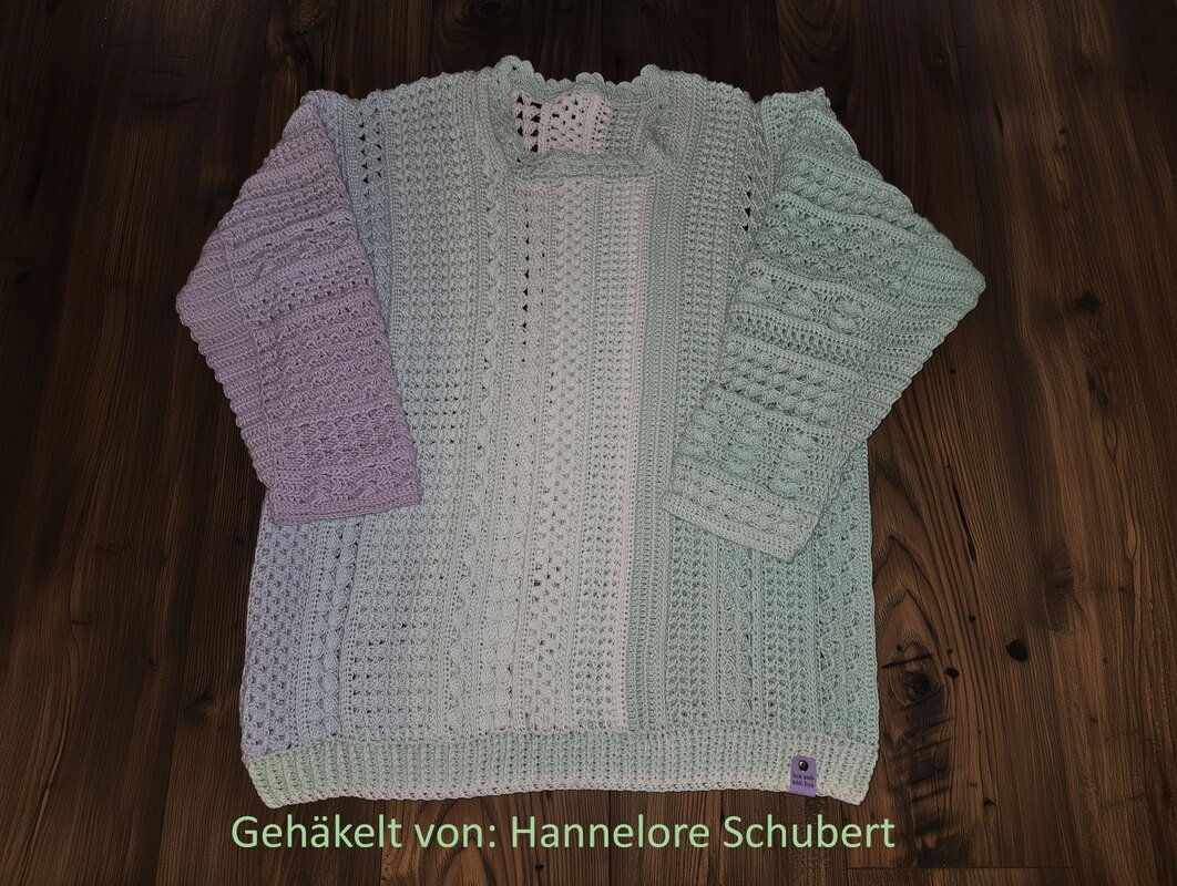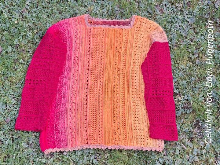 Der Häkelpullover ist individuell an jede Größe anpassbar.