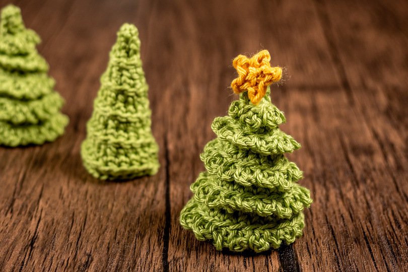 Du hast Lust auf schnelle kleine Weihnachts-Deko? Dann häkle dir diese niedlichen Tannenbäume mit Sternchen - natürlich kannst du beides auch separat häkeln und verwenden.