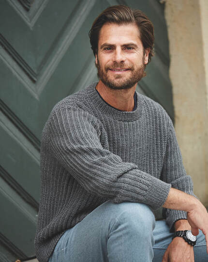 Und noch ein cooler Klassiker für ihn! Das schlichte lässige Modell im Strukturmuster hat an allen Kanten gerippte Bündchen. Der Pullover wird mit extrafeiner Merinowolle gestrickt die es in vielen Farben gibt. Wähle seine Lieblingsfarbe!