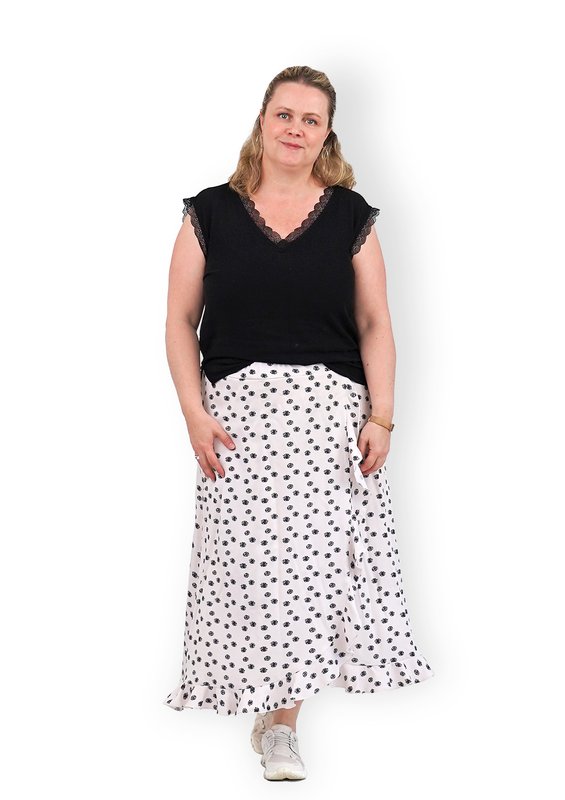 Unser Wickelrock ist dank des Volants gleichermaßen verspielt wie feminin. Er wird oben mit einem Gummibund zusammengehalten, wodurch er sehr bequem sitzt und immer gut aussieht. Du kannst den Rock in zwei verschiedenen Längen nähen, die beide im Schnitt enthalten sind. Durch die Verwendung von weichen, fließenden Stoffen wie Viskose oder Voile bekommst du einen locker schwingenden Rock, der an warmen Tagen angenehm deine Beine umspielt.