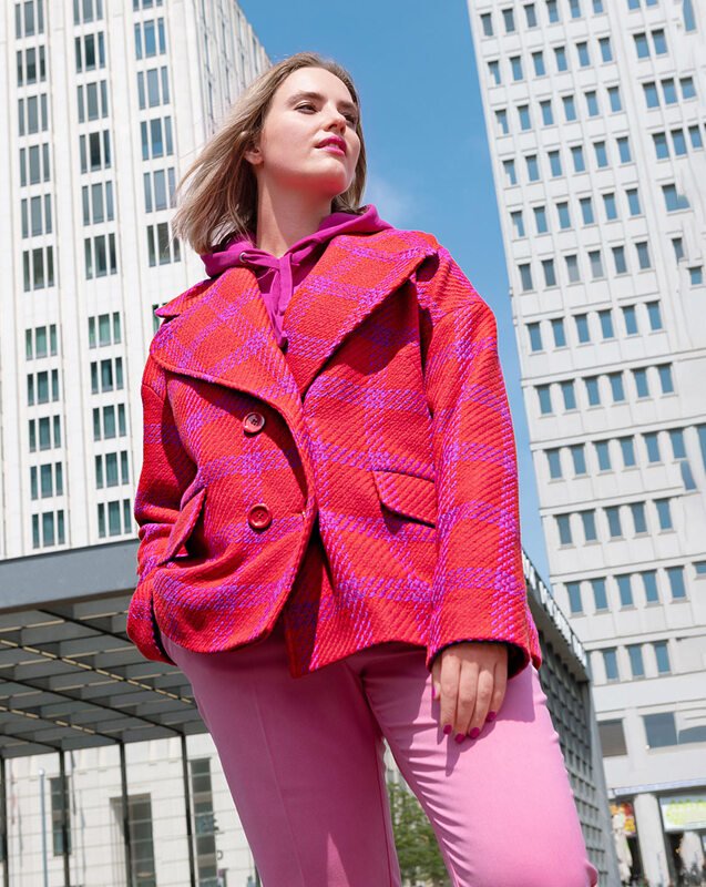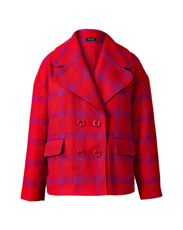 XL-Reverskragen tief eingesetzte Ärmel (so passt auch locker ein dicker Pulli darunter) und natürlich der knallige Karostoff lassen den Doppelreiher zum wahren Must-have werden. Die Kanten des Modells haben wir abgesteppt – so erhält das Modell noch mehr Stand.