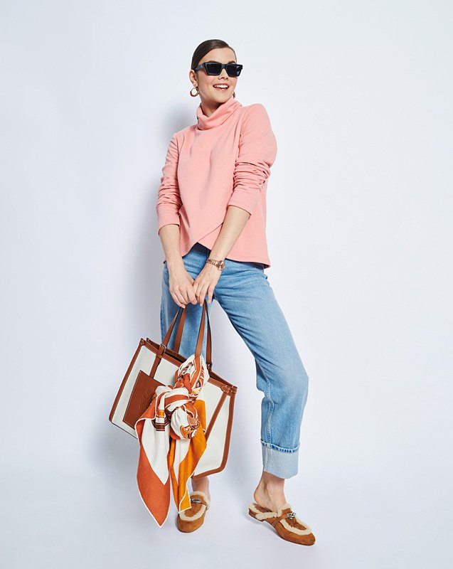 Raffinierter Schnitt Rollkragen kuscheliger Stoff: Der Rolli in Wickeloptik ist schon jetzt ein echter Favorit für den Winter. Die flauschig angeraute Innenseite des apricotfarbenen Sweatstoffs sorgt für ein wohliges Hautgefühl.