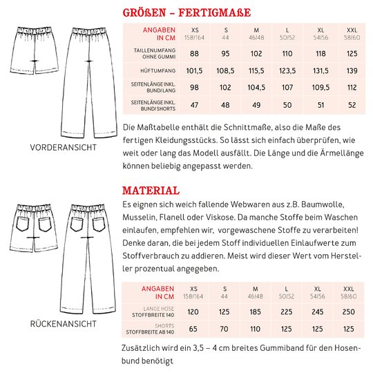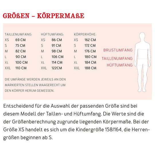 6 Doppelgrößen XS (158/164) bis XXL (58/60)