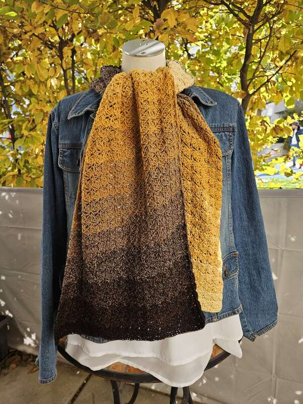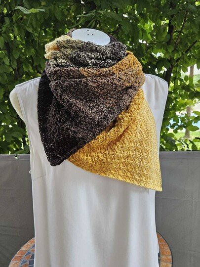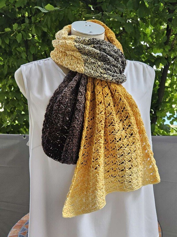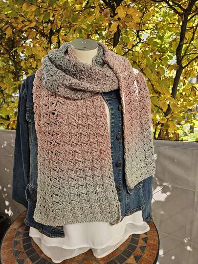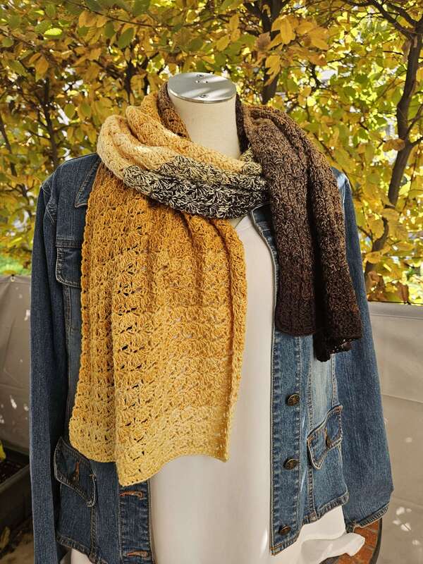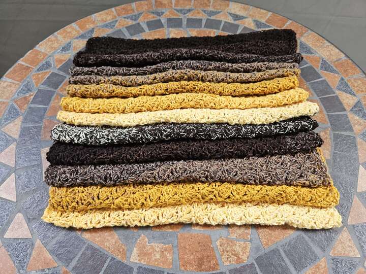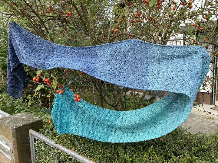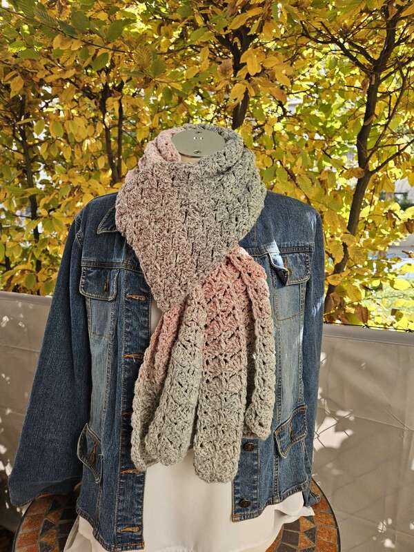 Du kannst Mad Robin mit beliebigem Garn häkeln. Die benötigte Garnmenge ist abhängig von der gewünschten Länge und Breite des Schals, dem gewählten Material und deinem persönlichen Häkelstil.