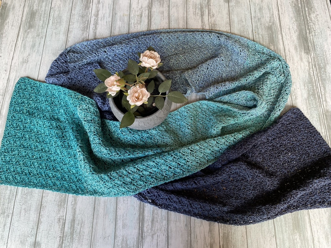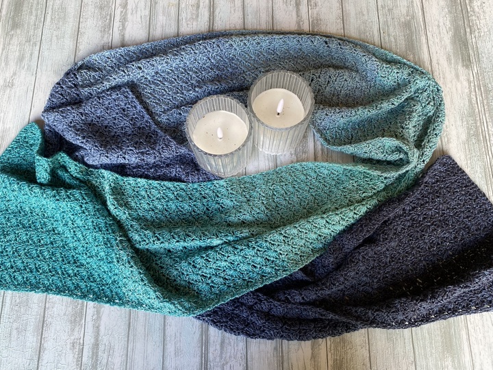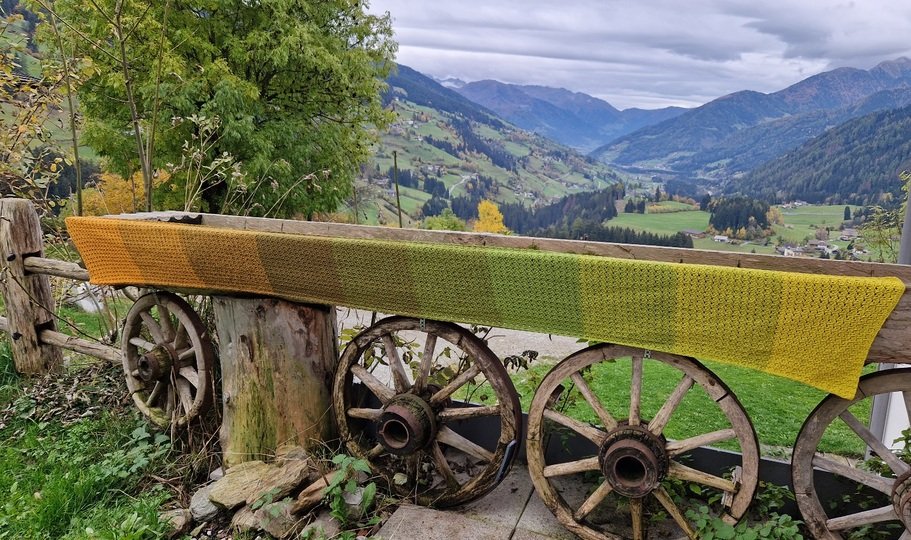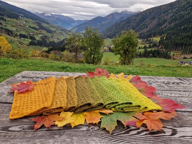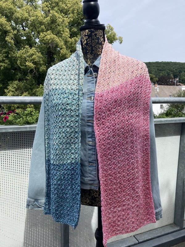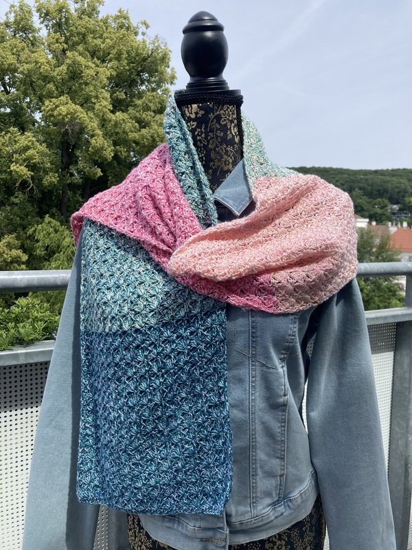 Der Schal kann in beliebiger Breite und Länge gearbeitet werden. Eine übersichtliche Tabelle mit Richtwerten zu den Schals der Testhäkelgruppe ist in der Anleitung enthalten.