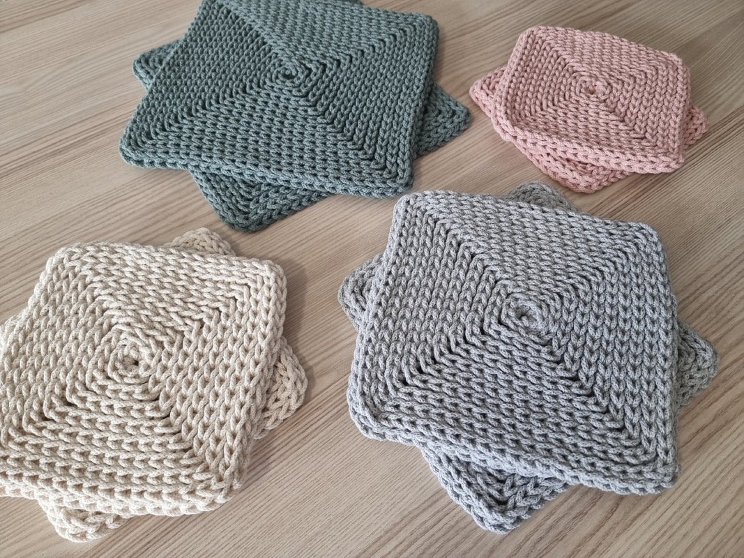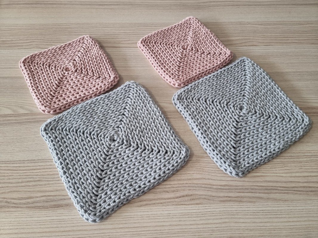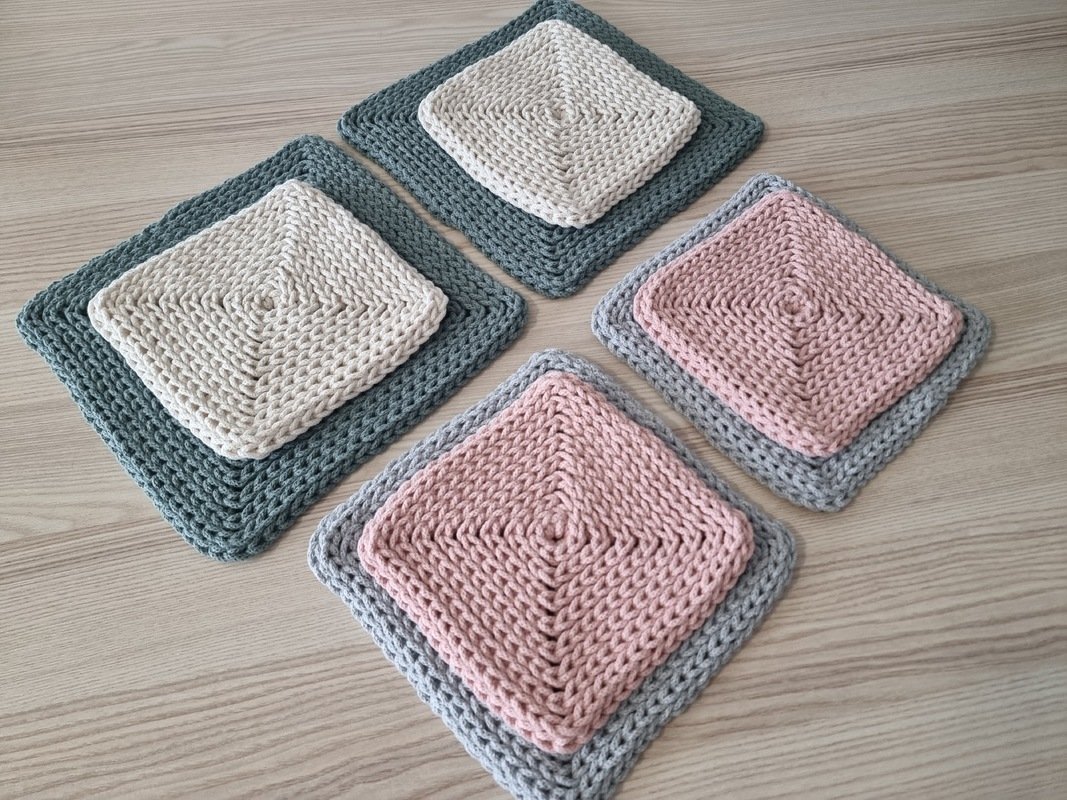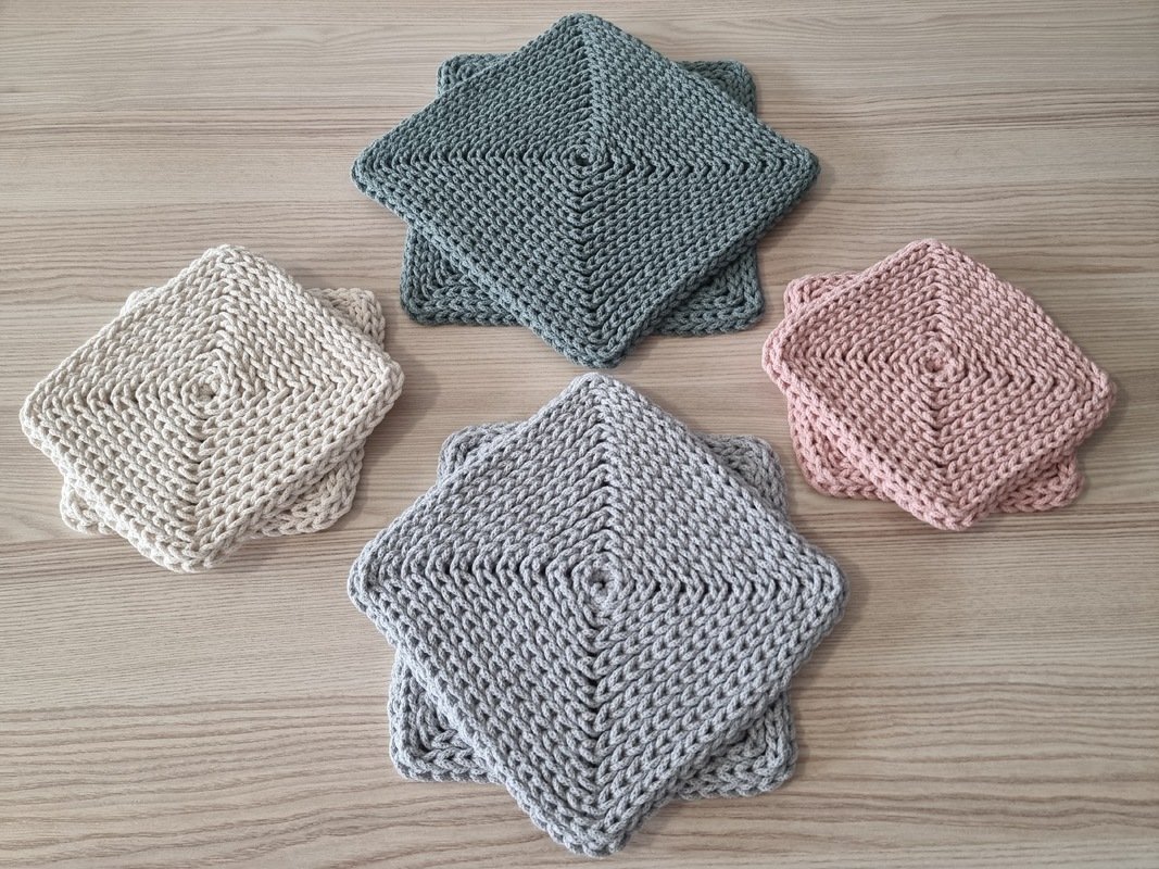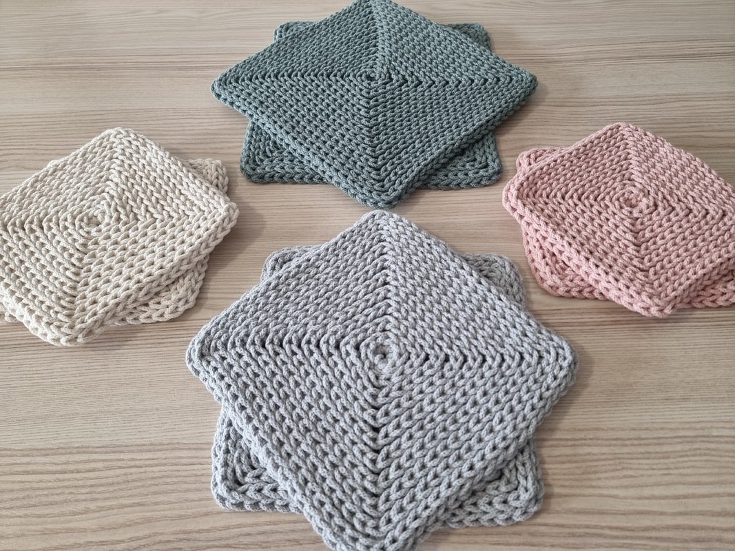 Die Untersetzer werden aus Bobbiny-Garn gearbeitet und sind dadurch besonders formstabil, langlebig und dekorativ.