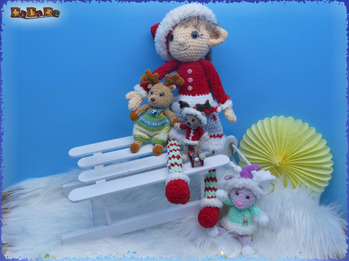 Was wäre das kleine Mädchen ohne seine witzigen Ringelstrümpfe, seine Felljacke, die man ausziehen kann und ihre coole Weihnachtsmütze, damit man sie direkt als Weihnachts-Helfer erkennt.