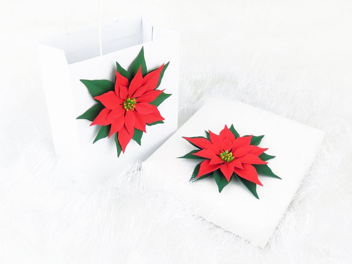 Auch eine sehr einfache Geschenktasche sieht festlich und weihnachtlich aus, wenn du sie mit einem Weihnachtsstern dekorierst.