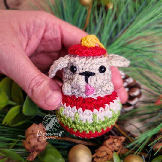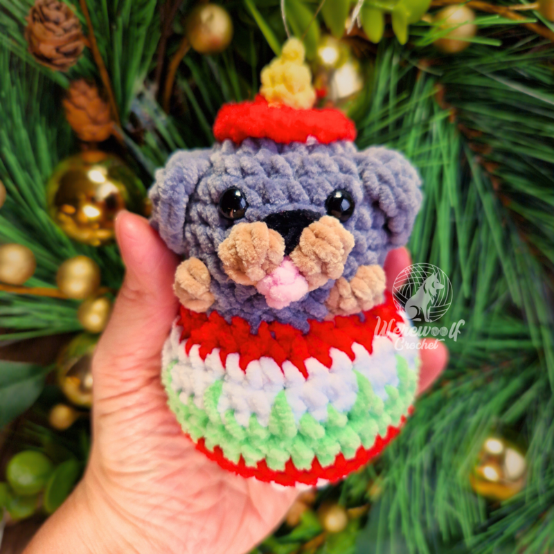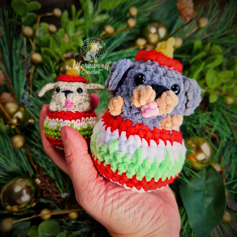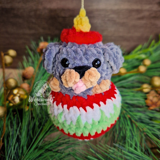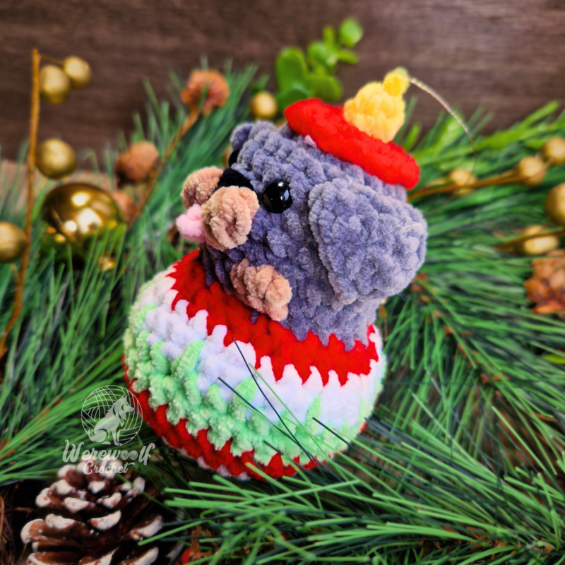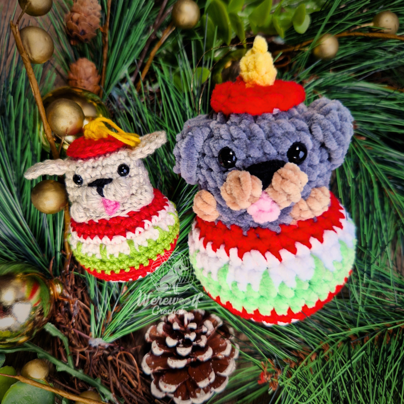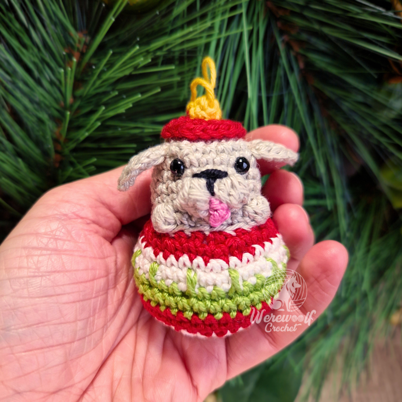 Dies ist ein Muster für eine gehäkelte Weihnachtskugel Hund. Perfekt zum Schmücken des Weihnachtsbaums oder als Geschenk für alle Hundeliebhaber. Sie können jedes beliebige Garn mit passendem Häkelnadel verwenden, das Sie möchten.