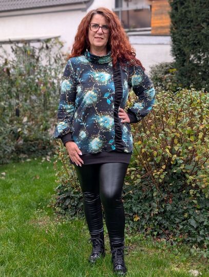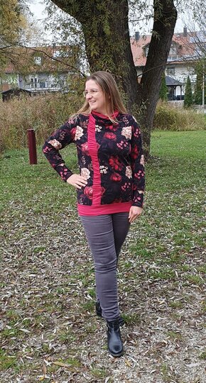 Câlin kannst du als Hoody oder Hoodykleid nähen. Der gekräuselte Streifen im Vorderteil ist hier der totale Eyecatcher und macht deinen Câlin zu etwas Besonderen. Du hast 4 verschiedene Kragenvarianten, 2 Ärmelvarianten, sowie 2 verschiedene Möglichkeiten deines Saumabschlusses zur Auswahl. Somit ist für jeden Geschmack etwas dabei.