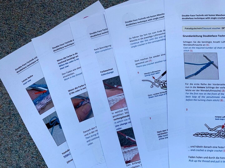Mit diesem Download erhalten Sie eine ausführliche, 11-seitige PDF-Datei mit der Beschreibung sowie Fotos und Grafiken der Technik in deutsch und englisch (US-Terminologie). Zusätzlich ist ein Video-Tutorial mit der Grundtechnik des Doubleface-Häkelns enthalten.