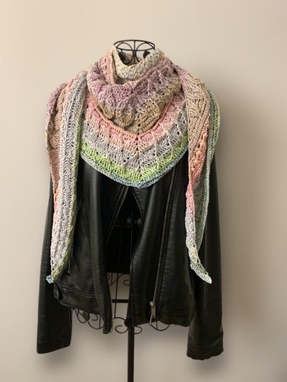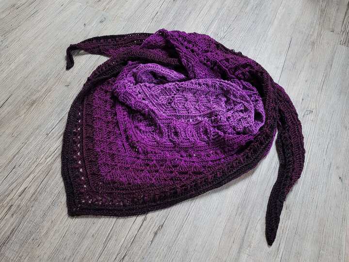 Das am Titelbild gezeigte Tuch hat folgende Abmessungen: 180 x 50 cm. Die Anleitung beinhaltet einen weiteren Mustersatz, falls man das Tuch noch größer häkeln möchte.